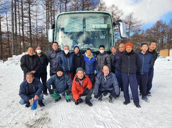 弊社大型車両を使用し、毎年恒例の雪山研修を実施いたしました。